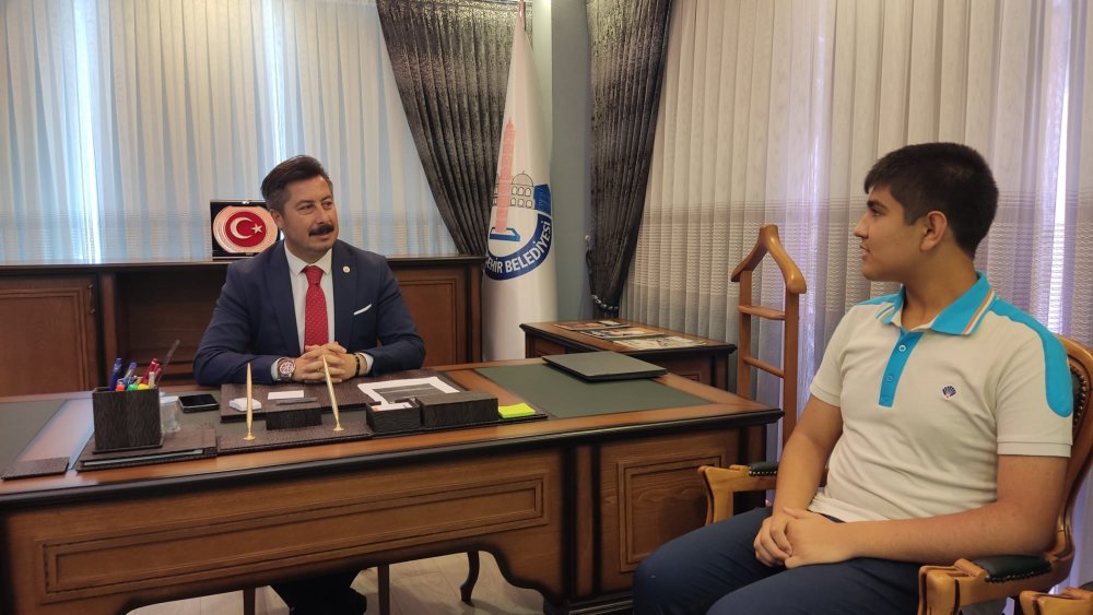 Başkan Ercan Özel, Enes Konar’a başarısından dolayı Mustafa Kemal Atatürk’ün tavsiyesiyle okullarda okunması gereken kitaplar listesine alınan Beyaz Zambaklar Ülkesinde isimli kitabı hediye etti. Ayrıca başarılı öğrencinin ailesini, öğretmenlerini ve Yenişehir Okyanus Koleji’ni de tebrik ederek teşekkürlerini iletti.