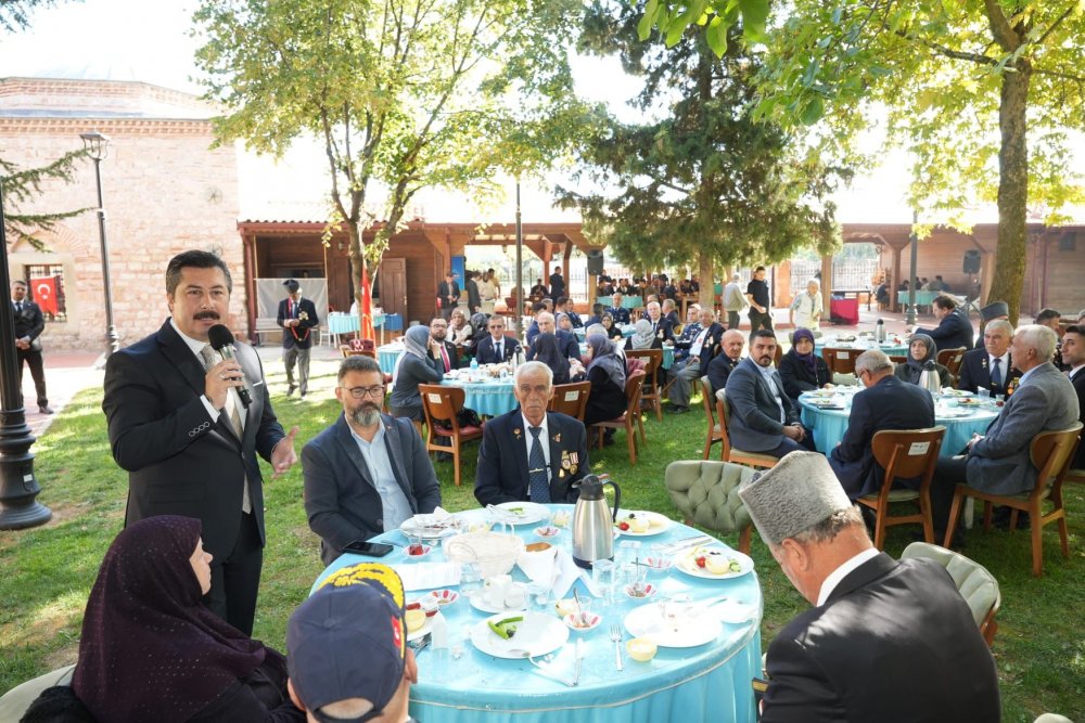 Programda konuşan Belediye Başkanı Ercan Özel, “Bugün, her duvarında tarihimizin izlerini taşıyan bu müstesna mekânda, sizlerle bir arada olmaktan onur duyuyoruz. Bugün 19 Eylül… Cumhuriyetimizin Kurucusu Başkomutan Gazi Mustafa Kemal Atatürk’e ‘GAZİ’lik unvanının verildiği gün. Çanakkale’de, Kurtuluş Savaşı’nda, Kıbrıs’ta, Güney Doğu’da, 15 Temmuz’da bayrağımız inmesin diye, ezanlarımız susmasın diye, bu topraklarda özgürce yaşayabilelim diye canını ortaya koyan kahramanlarımızın Gaziler Günü kutlu olsun” dedi.